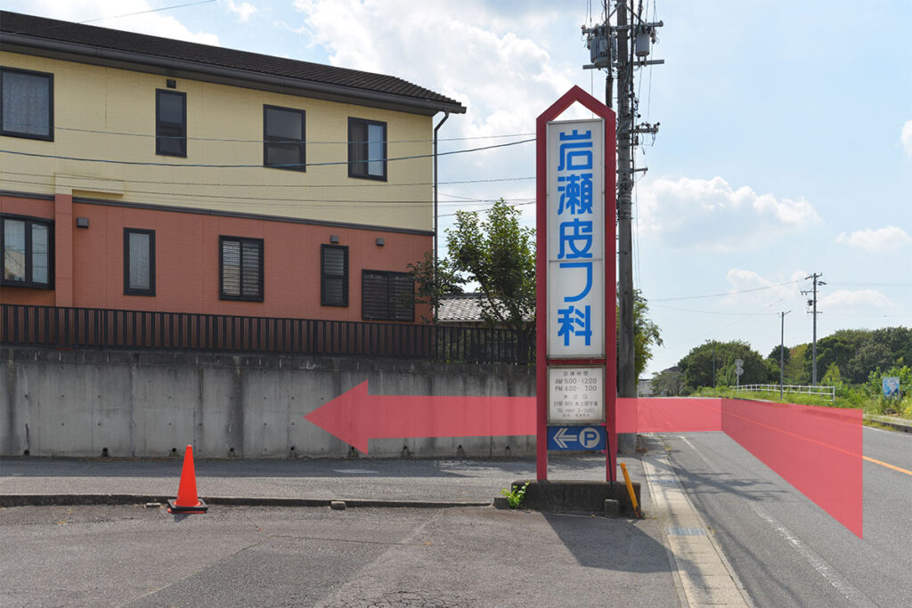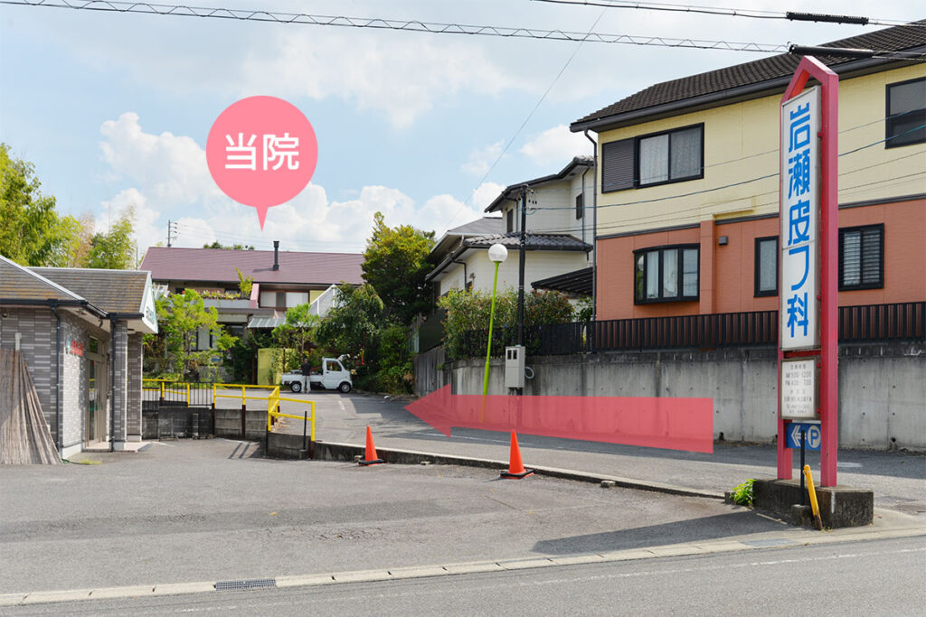 当院の建物は道路から奥まった位置にあります。敷地の入口に看板がありますので目印にしてください。